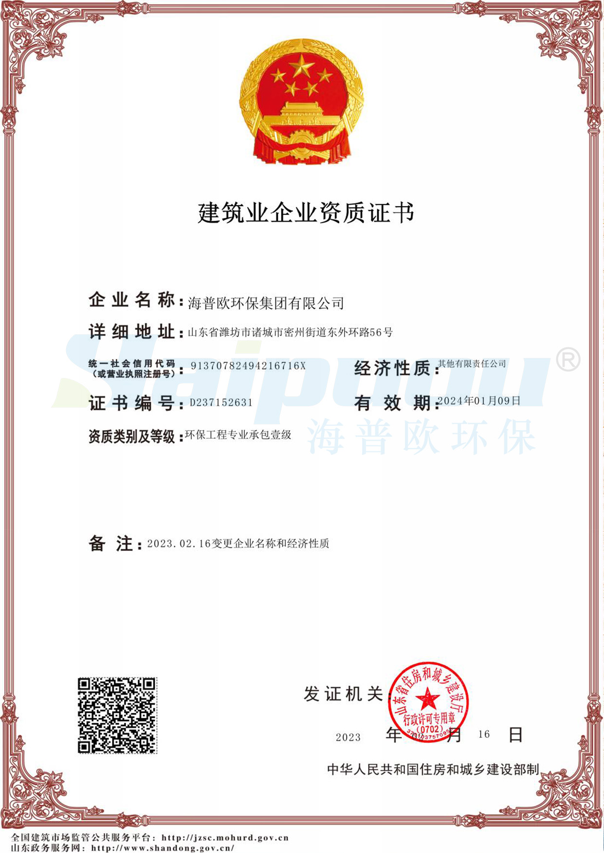 環(huán)保工程一級資質(zhì)