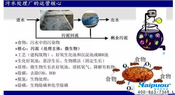 污水處理廠運營的核心是培養正確的活性污泥(微生物),污水處理廠的各種建筑物、儀表、設備、電氣控制等設施都是這一核心服務,活性污泥(微生物)是污水處理經常去除污染物(氨氮、COD、BOD、p等)的核心力量,其種類繁多