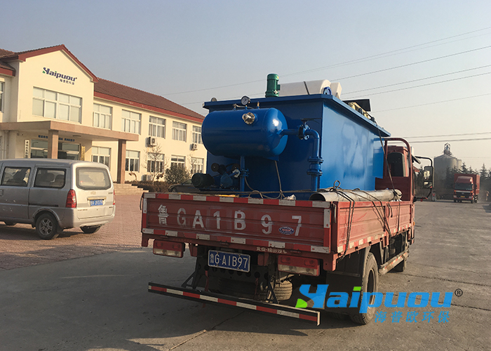 采用新型高效的溶氣設備——微氣泡發生器,代替傳統的引氣設備向水中溶氣,并在氣浮區域內安裝若干斜管組,包括箱體、刮渣機、螺旋出料機共同組成一個完整氣浮凈水裝置。理論上講,氣浮的處理效果與停留時間是沒有直接聯系的,而只與氣浮面積有關,如果將水深H的氣浮區減少為水深H/10,那么氣浮距離和停留時間都將縮小10倍,這就是著名的“淺池理論”。氣浮區加入斜管的目的是增大氣浮面積,大大降低了雷諾系數,使氣浮避免在紊流狀態下進行,制造良好的層流狀態,達到淺層氣浮的效果。