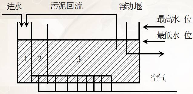 該工藝曝氣池中有機物濃度隨著向前推進不斷降低、污泥需氧量也不斷下降、曝氣量相應減少。