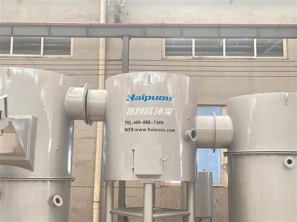 第二個燃燒室是一個垂直于地面的圓柱形筒體,其主要功能是進一步高溫分解旋轉窯體中未燃燒的有害物質,還可以噴灑一些液體廢物進行焚燒。為了徹底分解未燃燒的余氣,二次燃燒室有一個二次進氣裝置和一個發(fā)生的爐氣噴嘴,以確保煙氣在高溫下與氧氣和煙氣充分接觸。二次燃燒室的進氣量可以根據其出口煙氣的含氧量自動調整。二次燃燒室采用耐火磚結構,內部采用高鋁耐火層,保溫層采用珍珠巖和硅酸鋁纖維氈作為保溫層,外部采用耐熱鋼板。為確保系統(tǒng)的安全,在二次燃燒室的頂部設置了一個緊急排放安全閥。根據事先設定的打開條件,可自動打開緊急排放安全閥。污水處理設備