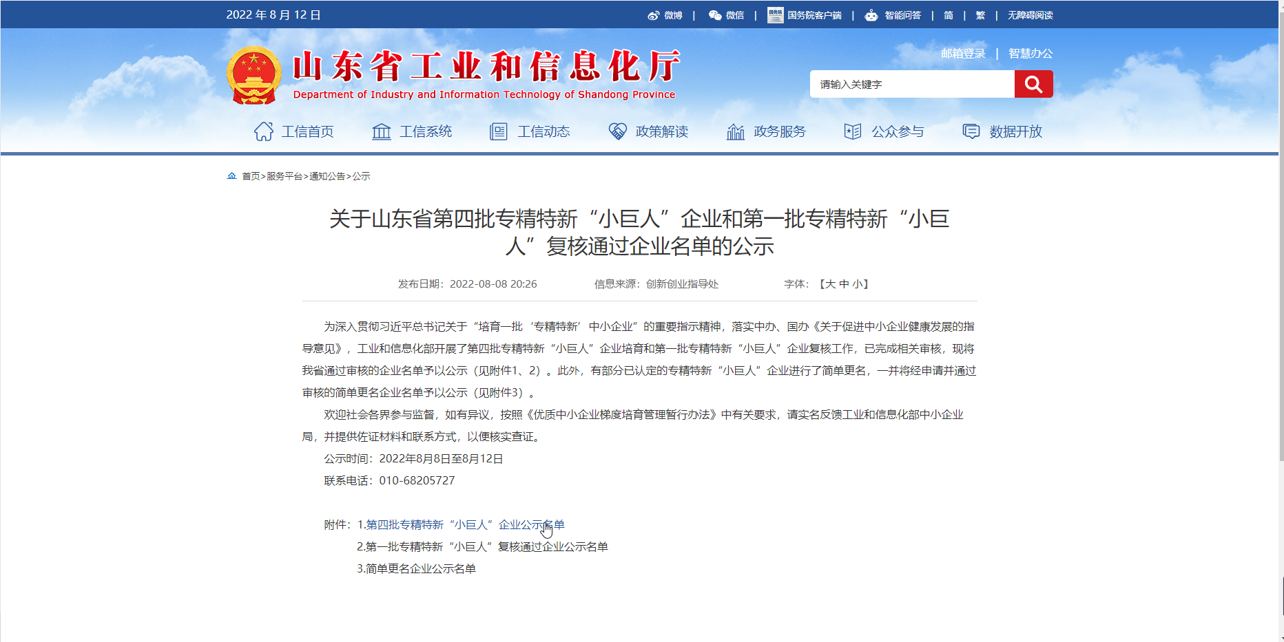 2022年08月08日 ,山東省工業和信息化廳公布了山東省第四批專精特新“小巨人” 企業名單。