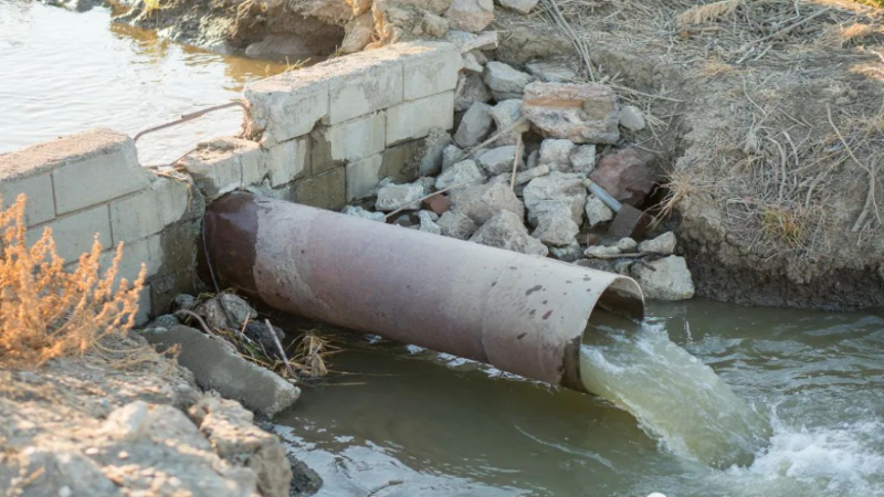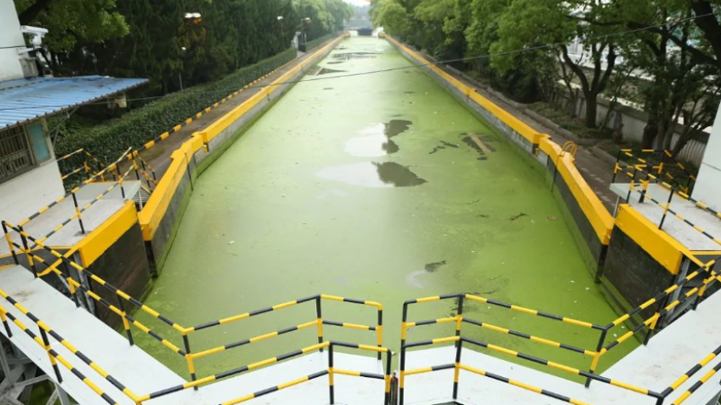 沉淀后的清水被抽出,準備進行進一步的處理或者排放。