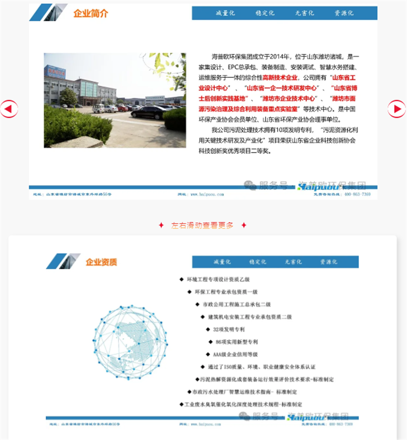 海普歐環(huán)保集團(tuán)是國家高新技術(shù)企業(yè)、國家級專精特新“小巨人”企業(yè)、工信部環(huán)保裝備制造行業(yè)規(guī)范條件企業(yè)、山東省專精特新企業(yè)、山東省制造業(yè)單項(xiàng)冠軍企業(yè)、山東省“瞪羚企業(yè)”、山東省兩化融合優(yōu)秀企業(yè)、山東省技術(shù)創(chuàng)新示范單位、山東省環(huán)境保護(hù)產(chǎn)業(yè)“骨干企業(yè)”、山東省DCMM貫標(biāo)試點(diǎn)單位、服務(wù)型制造示范企業(yè)、“隱形冠軍”企業(yè),擁有山東省工業(yè)設(shè)計中心、山東省一企一技術(shù)研發(fā)中心、山東省博士后創(chuàng)新實(shí)踐基地、濰坊市企業(yè)技術(shù)中心、濰坊市面源污染治理及綜合利用裝備重點(diǎn)實(shí)驗(yàn)室。公司擁有環(huán)境工程專項(xiàng)設(shè)計乙級資質(zhì),環(huán)保工程專業(yè)承包資質(zhì)一級、市政公用工程施工總承包二級、建筑機(jī)電安裝工程專業(yè)承包二級資質(zhì)、施工勞務(wù)不分等級資質(zhì)、安全生產(chǎn)許可證;同時取得了水污染治理設(shè)施運(yùn)維能力評價二級;中華環(huán)保產(chǎn)業(yè)聯(lián)合會理事單位、山東省環(huán)保產(chǎn)業(yè)協(xié)會理事單位、濰坊市建筑專業(yè)承包企業(yè)信用評價等級AAA企業(yè)、天津大學(xué)環(huán)境學(xué)院生態(tài)環(huán)境校友會(第二屆)理事會執(zhí)行會長單位、寧夏山東企業(yè)商會執(zhí)行會長單位、諸城市環(huán)保產(chǎn)業(yè)聯(lián)盟理事單位;并通過了ISO9001質(zhì)量體系認(rèn)證、ISO14001環(huán)境管理體系認(rèn)證、ISO45001職業(yè)健康安全管理體系認(rèn)證;擁有發(fā)明型專利33項(xiàng),實(shí)用性專利88項(xiàng)、計算機(jī)軟件著作權(quán)14項(xiàng);注冊了“haipuou”品牌商標(biāo);公司榮獲“濰坊市科學(xué)技術(shù)獎”“山東省工信廳認(rèn)定數(shù)字經(jīng)濟(jì)晨星工廠”、“守合同重信用企業(yè)”、“AAA信用企業(yè)”、“中國優(yōu)秀環(huán)保企業(yè)”、“ 山東省環(huán)境保護(hù)產(chǎn)業(yè)環(huán)境技術(shù)進(jìn)步獎”、“山東省企業(yè)技術(shù)創(chuàng)新促進(jìn)會技術(shù)創(chuàng)新獎”等多項(xiàng)榮譽(yù);我公司專利產(chǎn)品-基于5G應(yīng)用的云控制和云檢測數(shù)字化污水處理設(shè)備被認(rèn)定為“山東省知名品牌(產(chǎn)品)”、“山東制造·齊魯精品”榮譽(yù)。