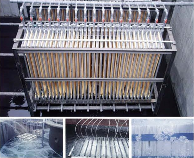MBR 工藝將膜分離技術與生物處理結合,膜組件(中空纖維或平板膜)替代二沉池實現泥水分離,污泥濃度高達 8000-12000mg/L,COD 容積負荷 2.0-3.0kg/(m³・d),是傳統活性污泥法的 2-3 倍,占地面積減少 50%。該工藝的 COD 去除率≥95%,氨氮≤3mg/L,濁度≤0.1NTU,適合排放標準為一級 A 及以上或需要回用的場景,某省會城市 3 萬噸 / 天 MBR 處理廠,出水作為城市河道生態補水,河道水質從劣 Ⅴ 類提升至 Ⅳ 類。
