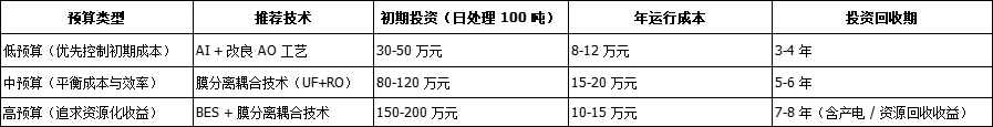 注:投資回收期已包含資源化收益(如電費節省、鹽分銷售),實際需根據當地電價、資源回收價格調整。