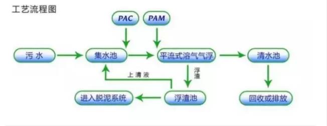 4.溶氣水:溶氣水先用自來水作回流,正常情況下,用處理過的清水作回流水。若污水洗滌劑用量大,泡沫多,影響氣浮效果,可用清水沖洗即可。
