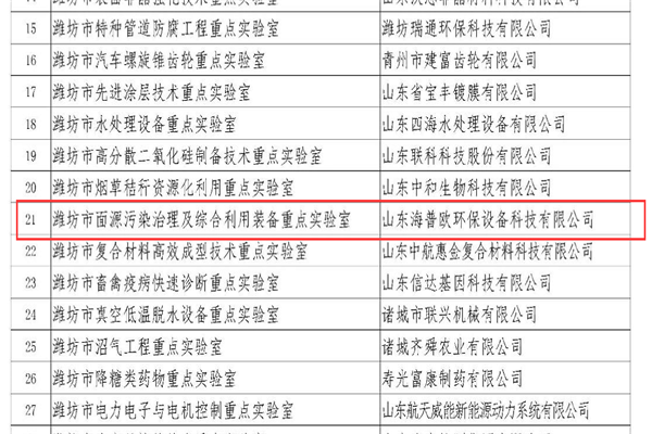 恭賀海普歐環保入選濰坊市重點實驗室批準建設名單公示: