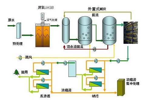 根據我國滲濾液處理現狀,海普歐環保推薦的膜處理方案為:“厭氧+膜生物反應器(MBR)+納濾(NF)+低壓反滲透(RO)”作為垃圾滲濾液處理工藝,理由如下: