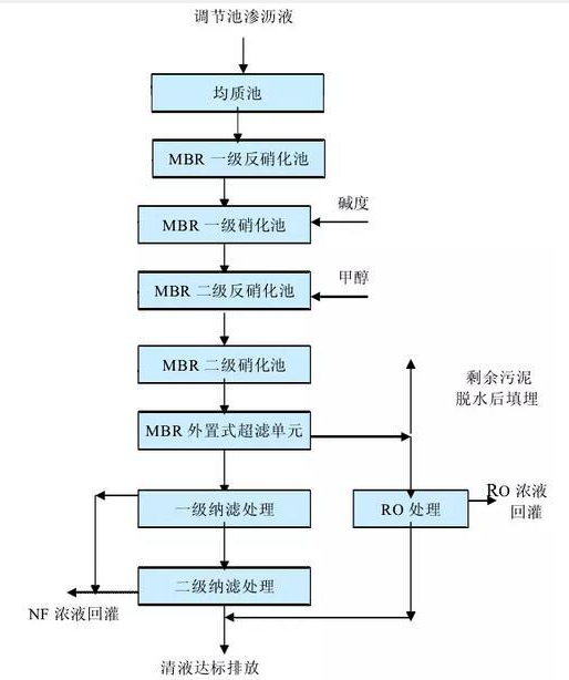 由于膜制造成本的降低,近兩年來,MBR已廣泛應用于垃圾滲濾液的處理。MBR膜應用于垃圾滲濾液的傳統技術如下