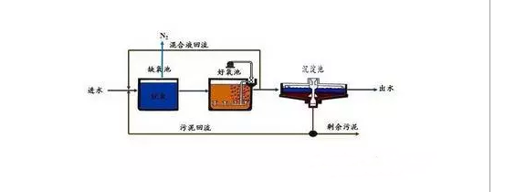 AO工藝又稱厭氧好氧工藝,A(Anacrobic)是厭氧階段,用于脫氮除磷;O(Oxic)是好氧階段,用于去除水中的有機物。