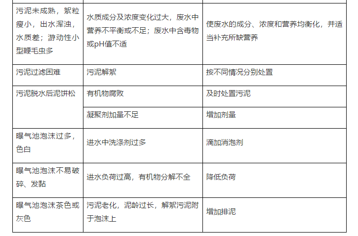 解決辦法是找出原因,分別對待。污泥中毒時,應停止有毒廢水的進入;對于缺乏營養(yǎng)、污泥老化和絮狀污泥,應適當添加營養(yǎng)并采取強化措施。