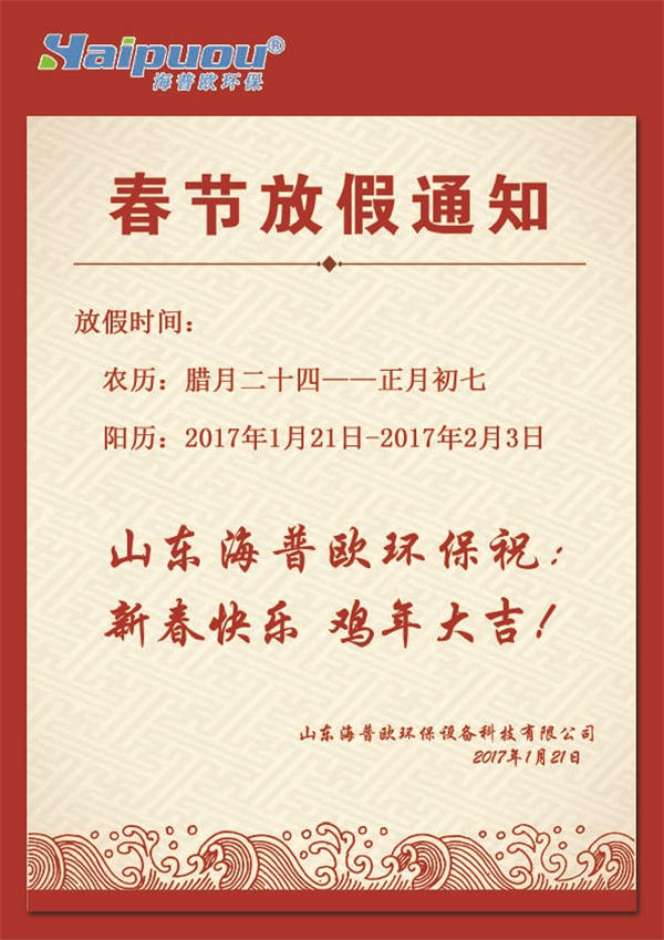 海普歐環(huán)保放假通知