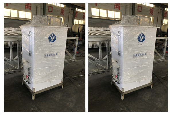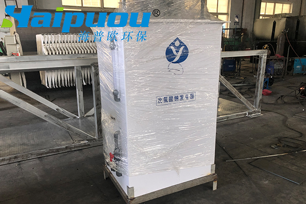 1. 次氯酸鈉發生器為組合形式,通過稀鹽水計量投加入電解槽,通過硅整流器接通陰陽極直流電源電解生成次氯酸鈉。